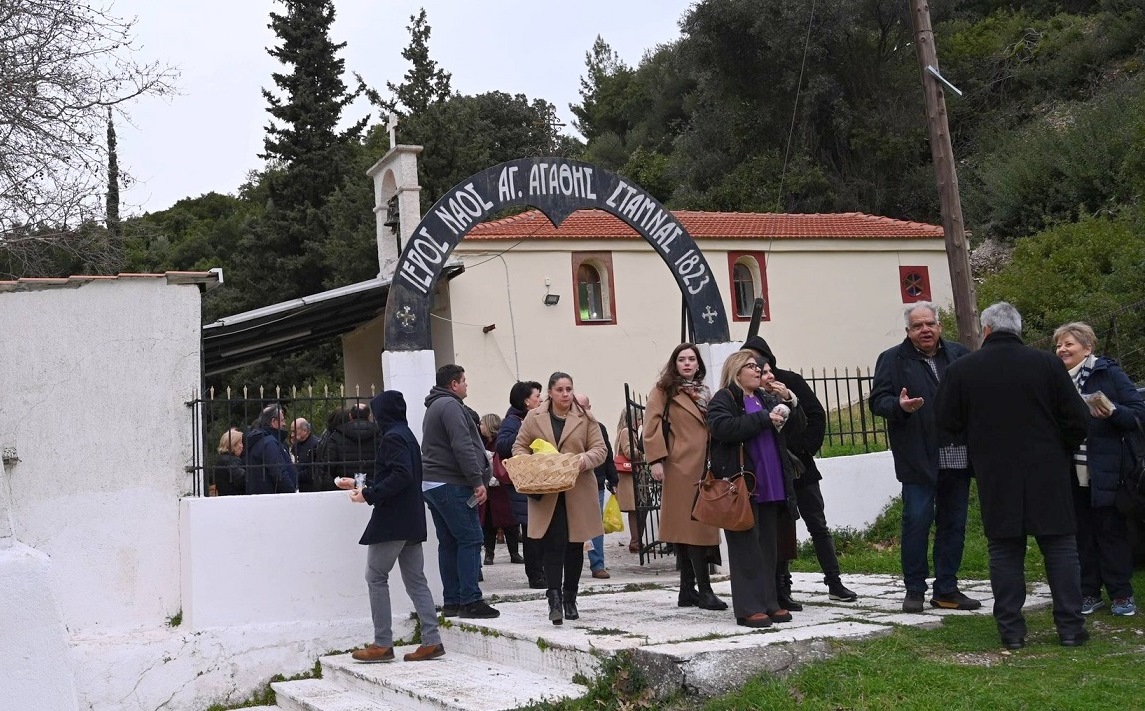 Σήμερα 5 Φεβρουαρίου τιμάται η μνήμη της Αγίας Αγάθης, προστάτιδα των μαστών και ιάτειρα των μαστικών παθήσεων. Ο Σύλλογος Γυναικών Σταμνάς "Αγία Αγάθη" όπως κάθε χρόνο έτσι και φέτος παραμονή της εορτής παρευρέθηκε με αρτοκλασία στο πανέμορφο εκκλησάκι της Αγίας Αγάθης, όπου τελέστηκε Μέγας Εσπερινός.