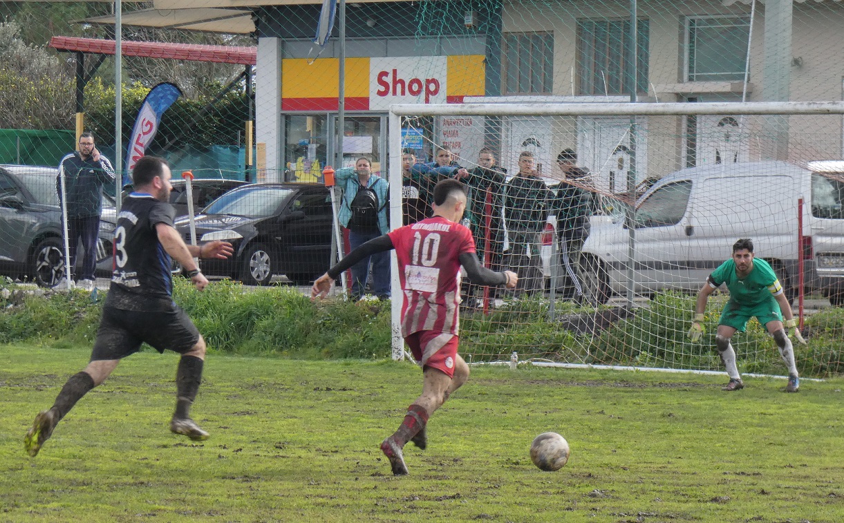 83’ Ο Χ. Κονδύλης ξανά μέσα στην περιοχή, με γυρισμένη πλάτη προς την εστία, σούταρε με τη μπάλα να περνά ελάχιστα έξω από την αντίπαλη εστία.