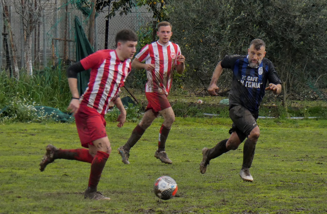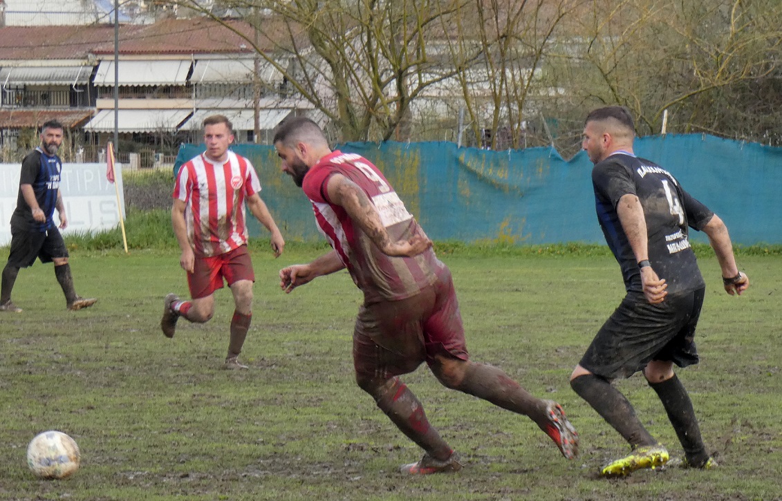 Σε έναν "βαρύ" και λασπωμένο αγωνιστικό χώρο στο γήπεδο Ζαχαράκη, ο Ολυμπιακός Αγρινίου ήρθε ισόπαλος 1-1 με αντίπαλο τον ΠΑΟ Καλυβίων, σε ένα παιχνίδι με πολλές αψιμαχίες στον βούρκο, εντάσεις, διαμαρτυρίες και νεύρα, τρεις αποβολές παικτών, αρκετές ευκαιρίες εκατέρωθεν και ένα "χαμένο" πέναλτι για τους ερυθρόλευκους.