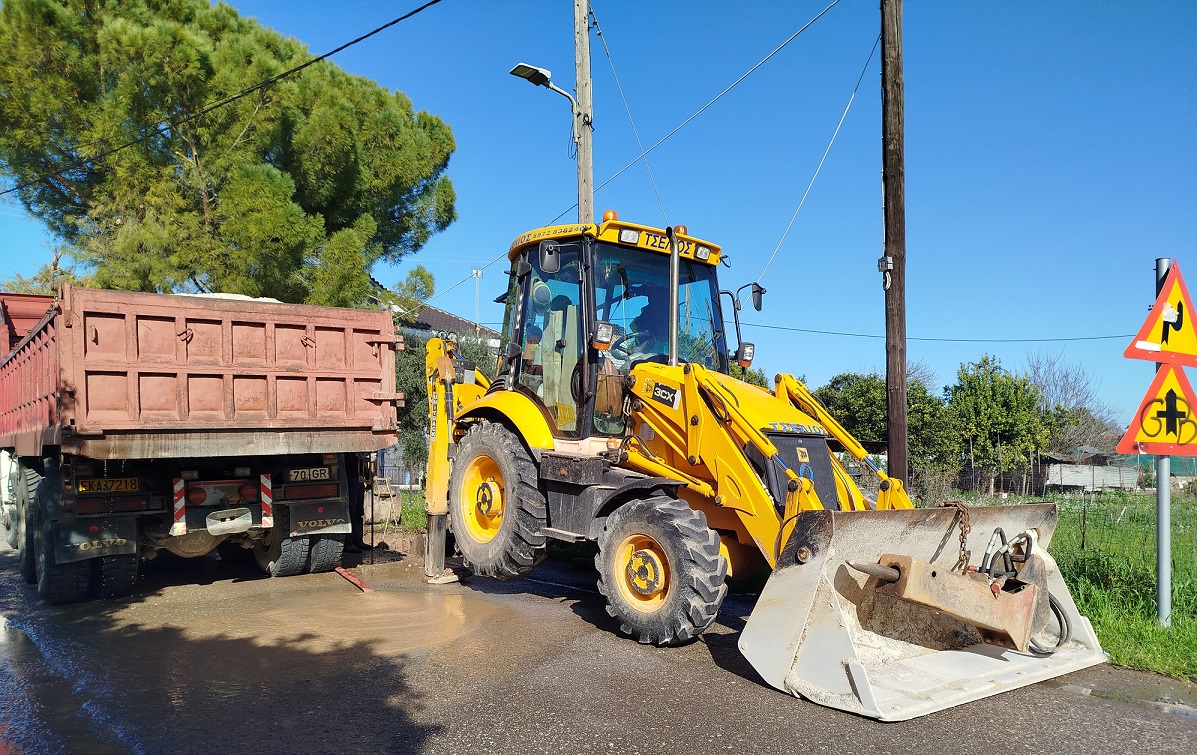Εργασίες αποκατάστασης βλάβης από μεγάλη διαρροή σε σπασμένο σωλήνα ύδρευσης πραγματοποιήθηκαν σήμερα από Τεχνικό συνεργείο της ΔΕΥΑ Αγρινίου σε κεντρικό δρόμο στα Καλύβια.