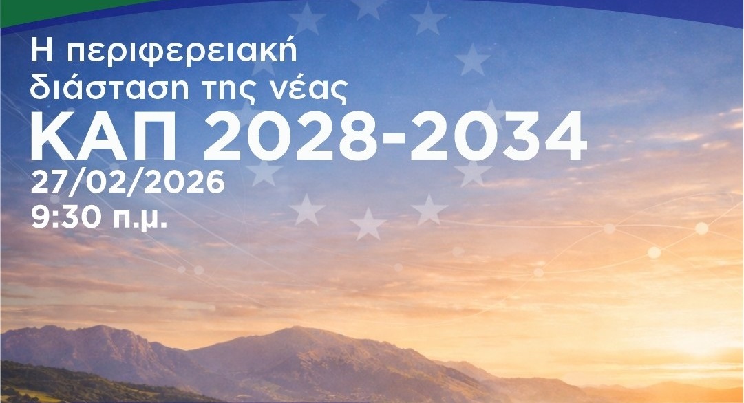 Η ειδική εκδήλωση – focus group με κεντρικό τίτλο: «Η περιφερειακή διάσταση της νέας ΚΑΠ 2028-2034», διοργανώνεται στο Αμφιθέατρο του Αρχαιολογικού Μουσείου Πατρών (Ν.Ε.Ο Πατρών-Αθηνών 38-40), την Παρασκευή, 27 Φεβρουαρίου 2026 και ώρα 09:30 π.μ.