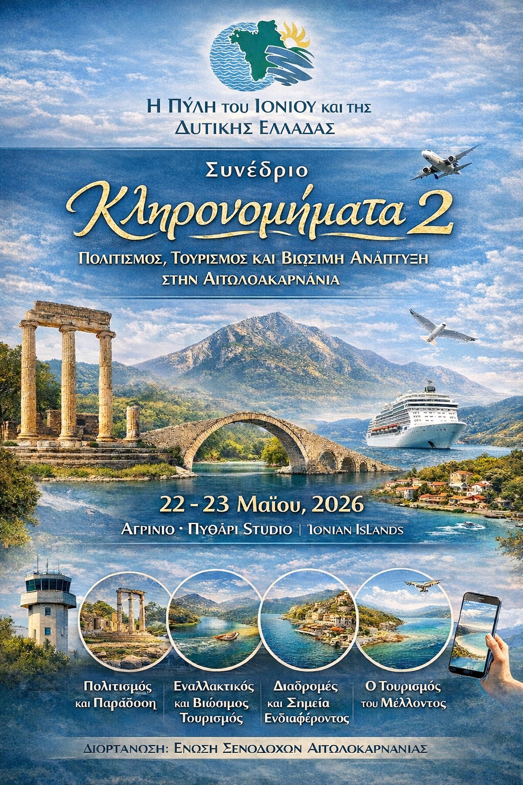 Η Αιτωλοακαρνανία, ένας τόπος με βαθιές ιστορικές ρίζες, σπάνια φυσική ομορφιά και έντονη πολιτισμική ταυτότητα, βρίσκεται στο επίκεντρο ενός σημαντικού διαλόγου για το μέλλον της περιοχής. Η Ένωση Ξενοδόχων Αιτωλοακαρνανίας διοργανώνει το συνέδριο «Κληρονομήματα 2», το οποίο θα πραγματοποιηθεί την Παρασκευή 22 και το Σάββατο 23 Μαΐου 2026, στο Αγρίνιο, στον χώρο Πυθάρι Studio.