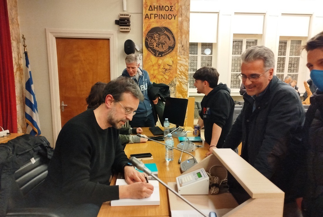 Με ιδιαίτερη χαρά λοιπόν καλωσορίζουμε τον συγγραφέα του βιβλίου και τον ευχαριστούμε που βρίσκεται σήμερα μαζί μας».