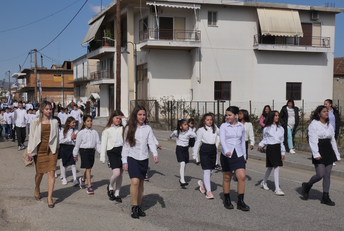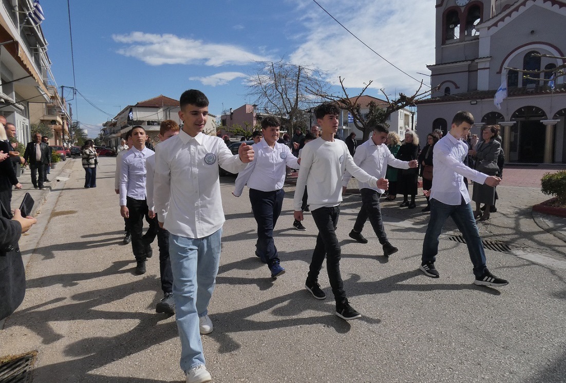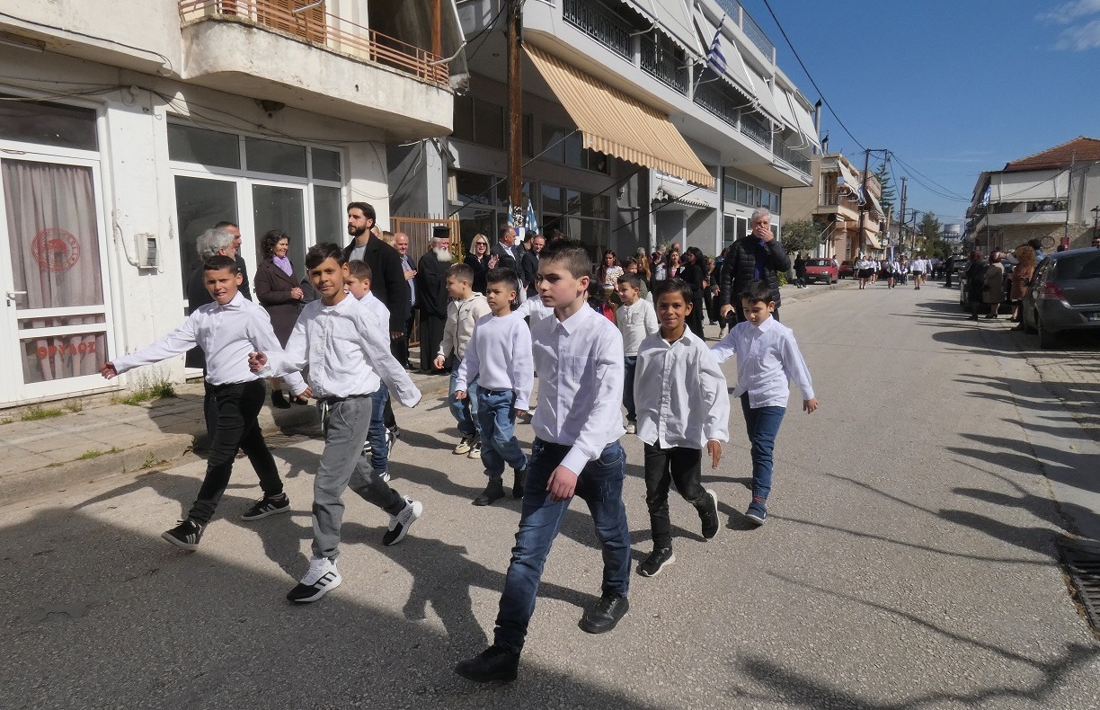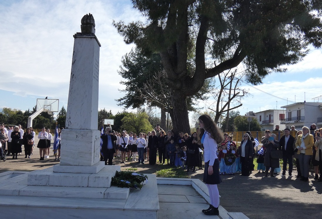 Αμέσως μετά, στους κεντρικούς δρόμους του χωριού μας, οι κάτοικοι παρακολούθησαν και χειροκρότησαν την παρέλαση των μαθητών του Νηπιαγωγείου, του Δημοτικού Σχολείου και του Γυμνασίου Καλυβίων, για να ολοκληρωθεί η πορεία στο Μνημείο των Πεσόντων, όπου τελέσθηκε η επιμνημόσυνη δέηση για τους πεσόντες υπέρ Πατρίδος.