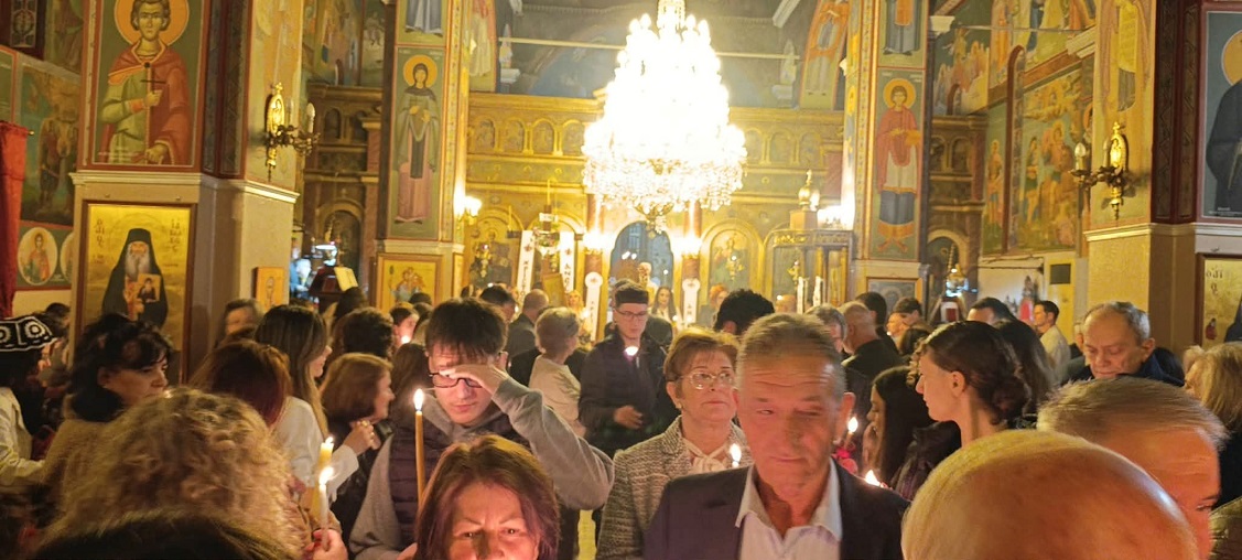 Παρακολούθησαν με ευλάβεια την Αναστάσιμη τελετή με τον ιερέα π. Θεοδόσιο Αθανασόπουλο και τους ιεροψάλτες να ψάλλουν τους ύμνους και άναψαν τις λαμπάδες τους με το το Άγιο Φως!