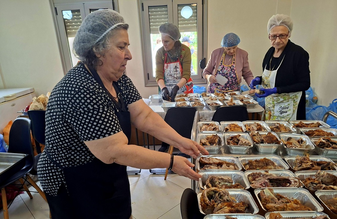 Επίσης, οι Εθελόντριες και σήμερα στη διακονία του συνανθρώπου, στο όνομα του Χριστού. 183 μερίδες και 4 για τα Κρατητήρια της Αστυνομίας, αφού και εκεί πρέπει να ζήσουν το μήνυμα της Αναστάσεως. Ο Αναστάς Κύριος να ευλογεί, τους δωρητές μας, τις εθελόντριες και όλο τον κόσμο, για την σωτηρία του οποίου Σταυρώθηκε και Αναστήθηκε ο Κύριος! Χριστός Ανέστη!»