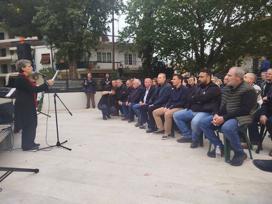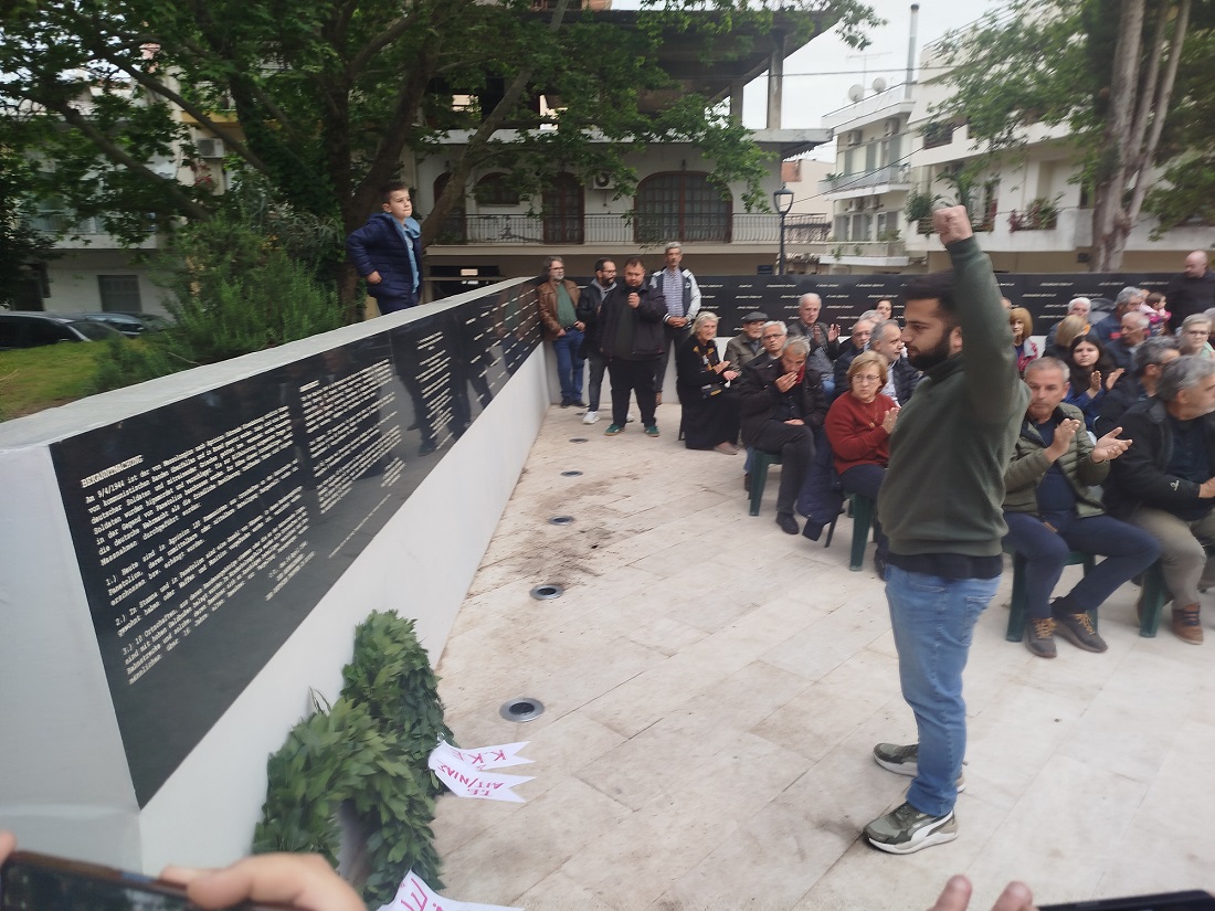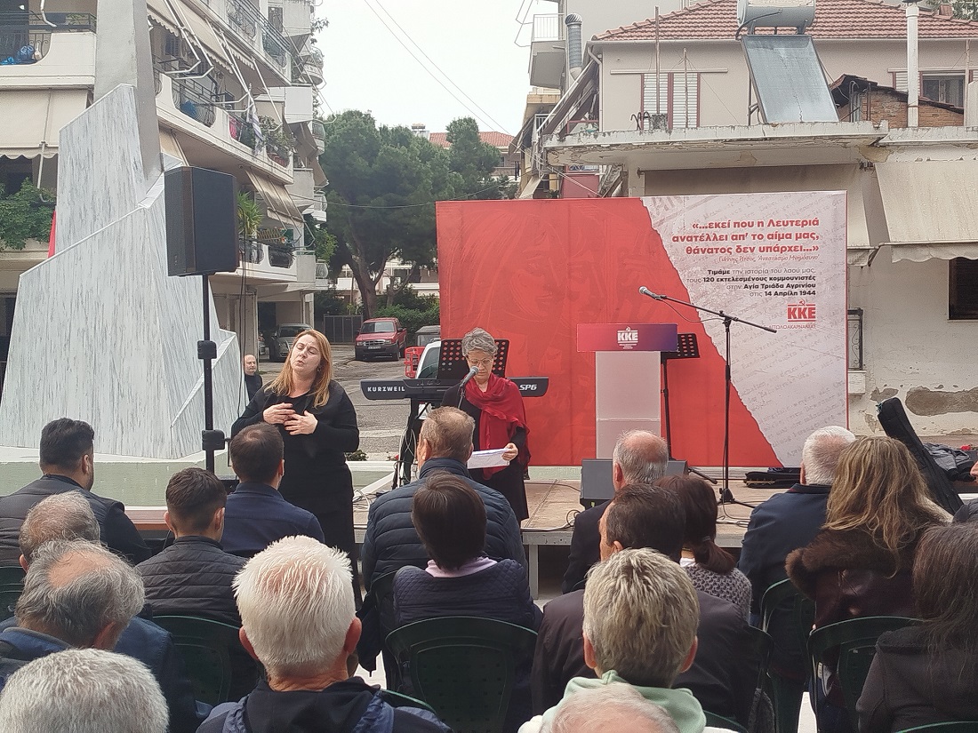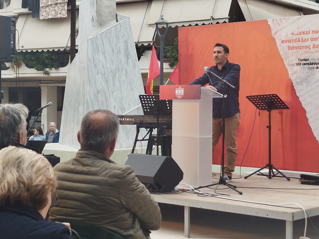 Βρισκόμαστε για ακόμη μια φορά εδώ, σε έναν ιερό τόπο του νομού μας, σε έναν από τους δεκάδες τόπους μέσα στη χώρα, που είναι ποτισμένος με το αίμα των κομμουνιστών, με το αίμα των αγωνιστών του ΕΑΜ, με το αίμα του λαού μας.