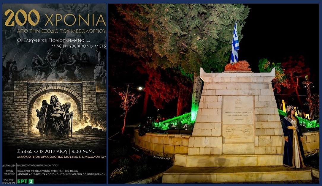 Διακόσια χρόνια μετά την ηρωική Έξοδο του Μεσολογγίου, με μια ιστορική επετειακή εκδήλωση τιμάται η μνήμη των Ελεύθερων Πολιορκημένων, φωτίζοντας τη ζωντανή συνέχεια της ιστορίας μέσα από τους απογόνους τους.