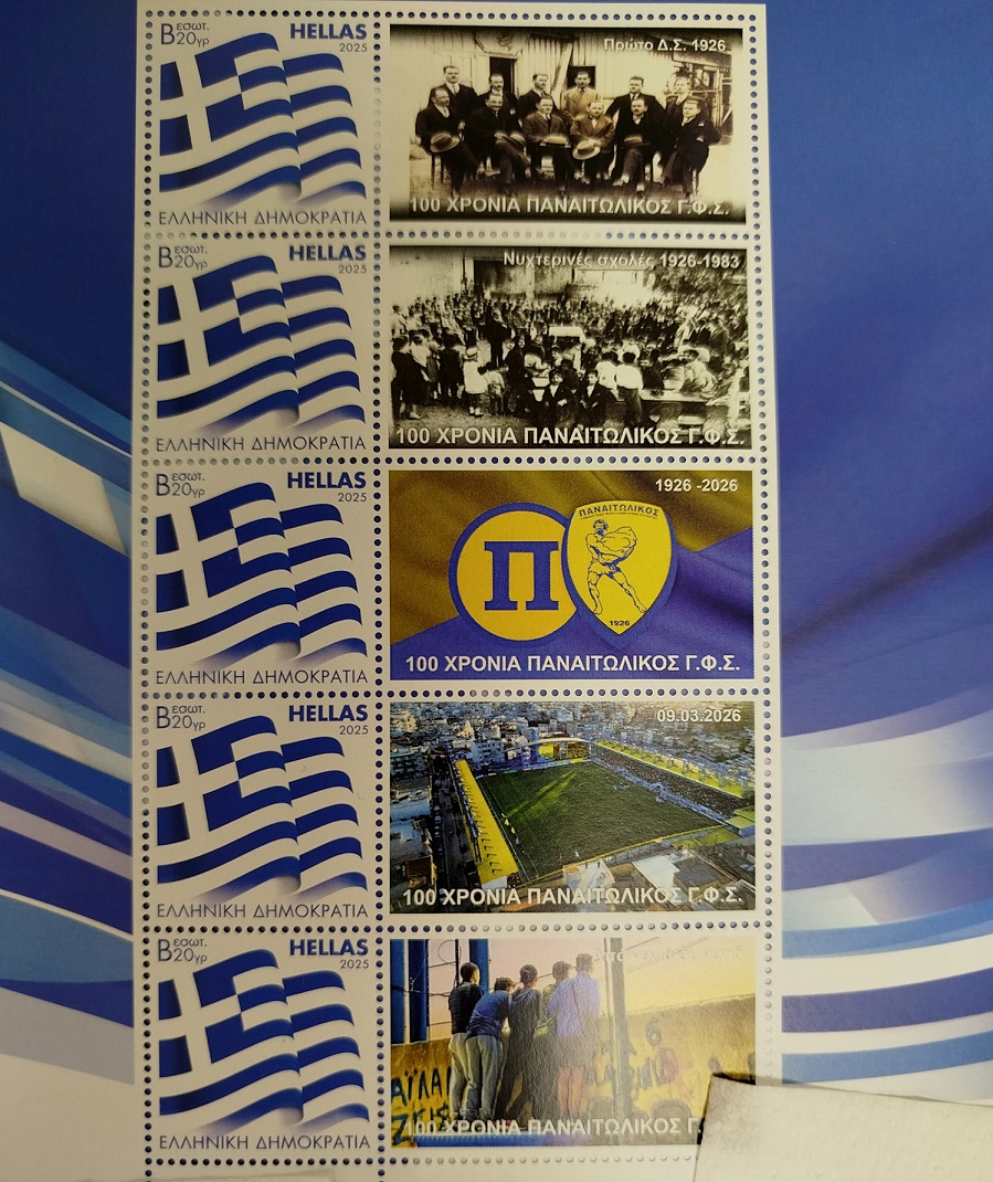 Στα πλαίσια των εορτασμών και των εκδηλώσεων για τα 100 χρόνια του Παναιτωλικού Γ.Φ.Σ που θα λάβουν χώρα το 2026, με τη συμμετοχή του Δήμου Αγρινίου και της Περιφέρειας Δυτικής Ελλάδας, δεν πρέπει να λείπει η αναμνηστική έκδοση του γραμματοσήμου.