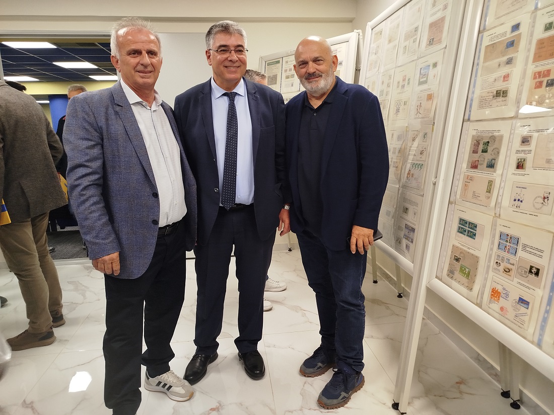 Παράλληλα, εγκαινιάστηκε η έκθεση γραμματοσήμων με θέμα τον αθλητισμό, η οποία φιλοξενείται στην ίδια αίθουσα και προσελκύει το ενδιαφέρον μικρών και μεγάλων.