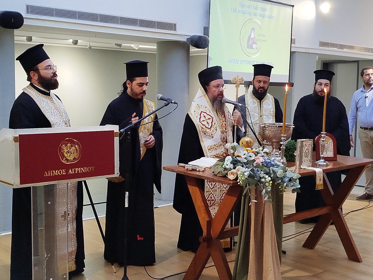 Ο Σεβασμιώτατος Μητροπολίτης Αιτωλίας & Ακαρνανίας κ. Δαμασκηνός τέλεσε την Κυριακή 5 Οκτωβρίου τον Αγιασμό για την έναρξη των φετινών μαθημάτων και δράσεων του Ιδρύματος Πολιτισμού της Τοπικής μας Εκκλησίας «Άγιος Ευγένιος ο Αιτωλός» στην αίθουσα της Παλαιάς Δημοτικής Αγοράς Αγρινίου.