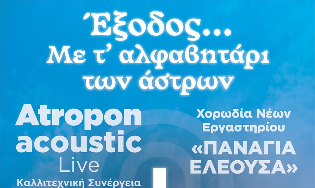 Την Δευτέρα 1η Δεκεμβρίου στο Παπαστράτειο Μέγαρο Αγρινίου στις 19:00 μ.μ. το Εργαστήρι «Παναγία Ελεούσα» στο πλαίσιο του εορτασμού της Παγκόσμιας Ημέρας των ατόμων με αναπηρία, σας προσκαλεί στην εκδήλωση «Έξοδος... Με τ’ αλφαβητάρι των άστρων».