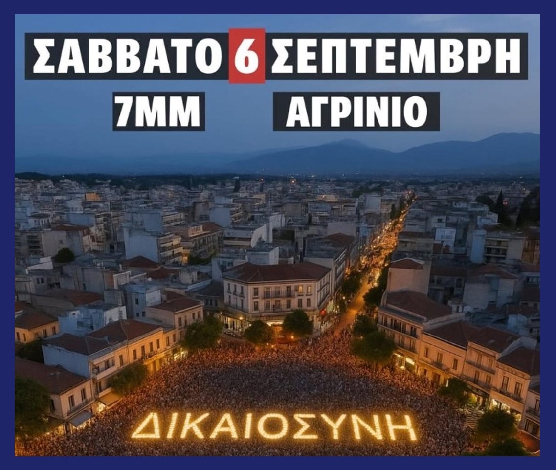Σε συγκέντρωση συμπαράστασης για την τραγωδία των Τεμπών καλούνται να συμμετάσχουν αύριο Σάββατο 6 Σεπτεμβρίου οι πολίτες κάθε ηλικίας στην κεντρική πλατεία Αγρινίου, στις 7 το βράδυ, μετά το κάλεσμα που έκανε από τα μέσα κοινωνικής δικτύωσης η κα Μαρία Καρυστιανού, για να δώσουν όλοι το «παρών» όχι μόνο στην Αθήνα, αλλά και σε πλατείες σε όλη τη χώρα.