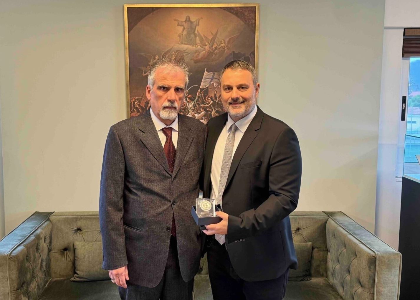 Ο Δήμαρχος Ιερής Πόλης Μεσολογγίου, Σπύρος Διαμαντόπουλος, βράβευσε τον Καθηγητή του Πανεπιστημίου Πατρών, κ. Αριστογιάννη Γαρμπή, για την ουσιαστική του συνεισφορά στην υλοποίηση του μνημείου προς τιμήν του Δημητρίου Μεσθενέα, συνεργάτη του Ιωάννη-Ιάκωβου Μάγερ και τυπογράφο των «Ελληνικών Χρονικών» και του «Ύμνου εις την Ελευθερίαν», σήμερα, Τρίτη 25 Νοεμβρίου 2025.