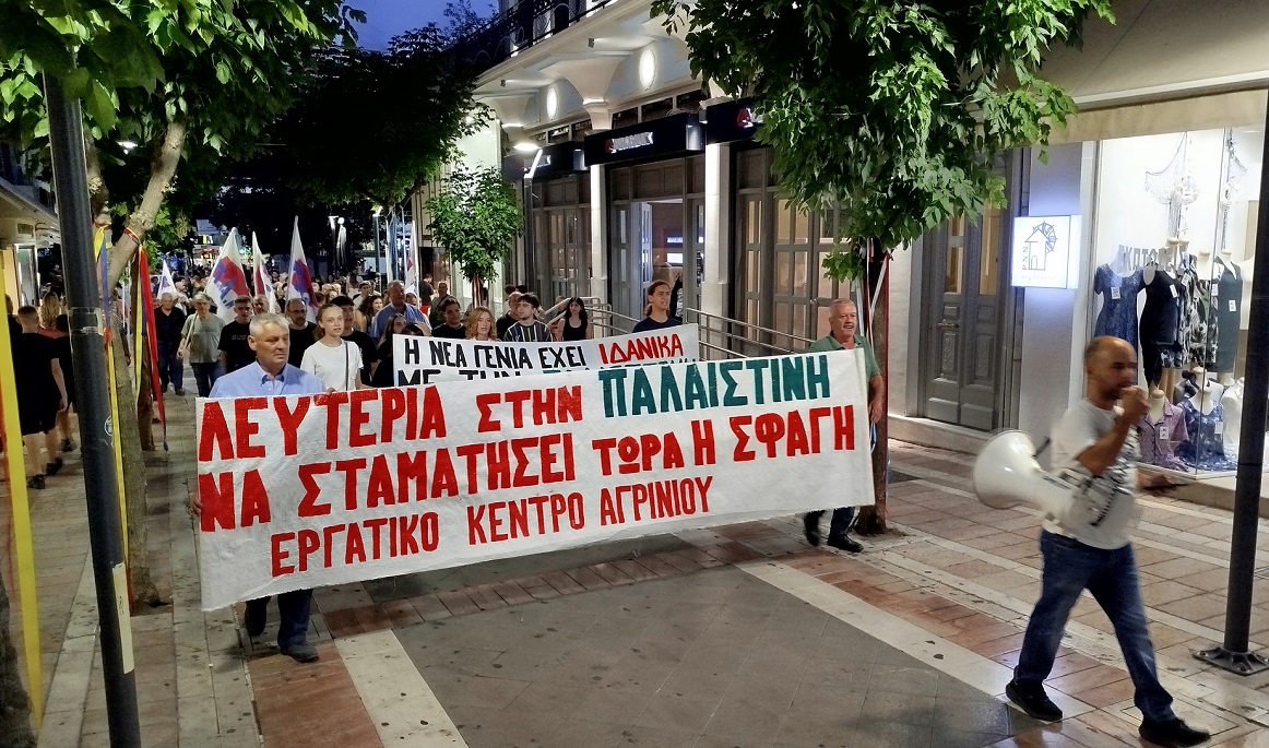 Με συμμετοχή πολλών πολιτών πραγματοποιήθηκε σήμερα κινητοποίηση από το Εργατικό Κέντρο Αγρινίου, ώστε να εκφράσει αλληλεγγύη στον λαό της Παλαιστίνης.