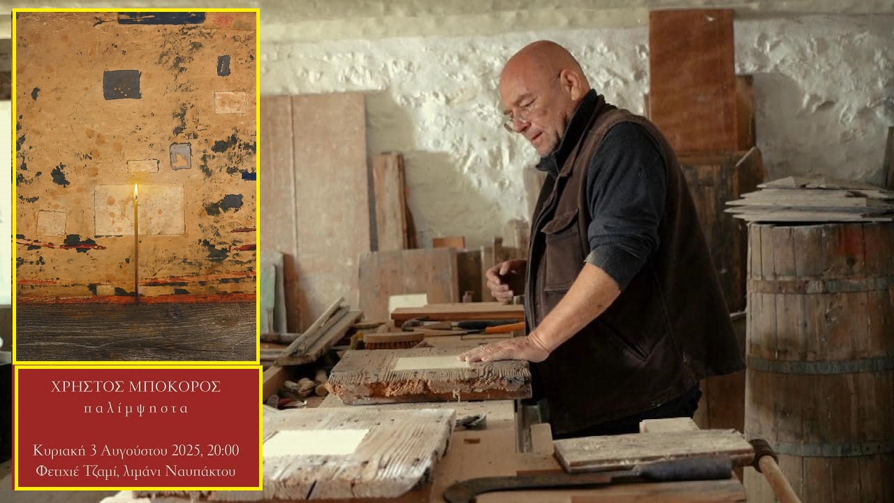 Η Εφορεία Αρχαιοτήτων Αιτωλοακαρνανίας και Λευκάδος σας προσκαλεί στα εγκαίνια την έκθεσης "Χρήστος Μποκόρος - Παλίμψηστα" την Κυριακή 3 Αυγούστου 2025, στις 20:00 μ.μ. στο Φετιχιέ Τζαμί, στο λιμάνι της Ναυπάκτου.