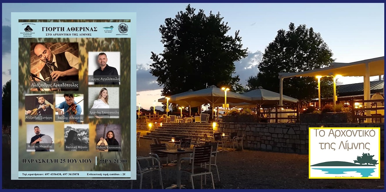 Με ιδιαίτερη χαρά ο Πολιτιστικός Όμιλος Καινούργιου «Οι Θεστιείς» σας προσκαλούν και φέτος στην Γιορτή Αθερίνας, την μεγαλύτερη γιορτή του καλοκαιριού, που θα πραγματοποιηθεί την επόμενη Παρασκευή 25 Ιουλίου, στον μοναδικό χώρο του κέντρου "Αρχοντικό της Λίμνης".