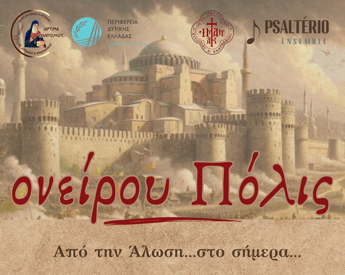 Το Ίδρυμα Πολιτισμού της Ιεράς Μητροπόλεως Αιτωλίας και Ακαρνανίας «Άγιος Ευγένιος ο Αιτωλός», με αφορμή την επέτειο της Αλώσεως της Κωνσταντινούπολης στις 29 Μαΐου του 1453 συνδιοργανώνει με την Περιφέρεια Δυτικής Ελλάδος και το μουσικό σχήμα Psalterio, την μουσική παράσταση- αφιέρωμα: "ονείρου Πόλις".