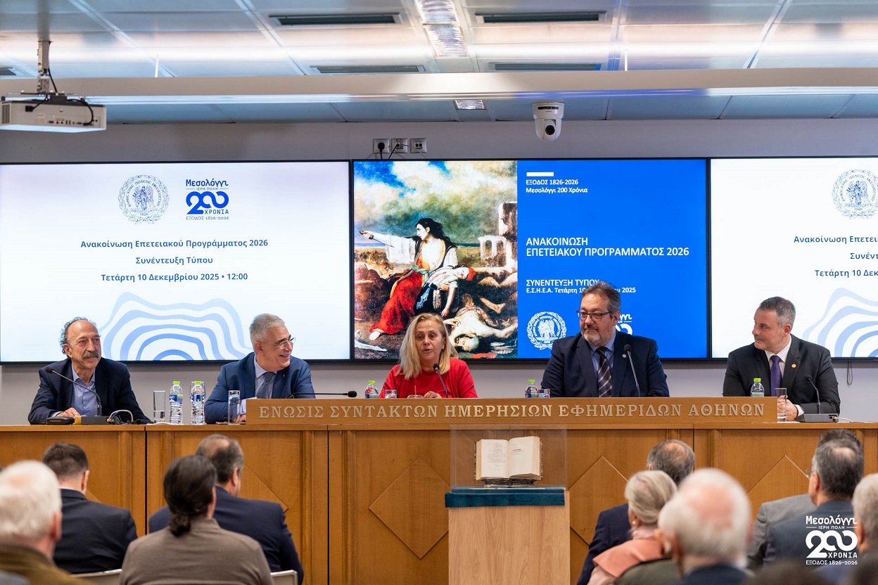 Σήμερα Τετάρτη 10 Δεκεμβρίου 2025, στην αίθουσα «Γιώργος Καράντζας» της ΕΣΗΕΑ, πραγματοποιήθηκε συνέντευξη Τύπου του Δημάρχου Ιεράς Πόλεως Μεσολογγίου, Σπυρίδωνος Β. Διαμαντοπούλου, κατά την οποία παρουσιάστηκε το πρόγραμμα εκδηλώσεων για τη Διακοσιοστή Επέτειο της Εξόδου.