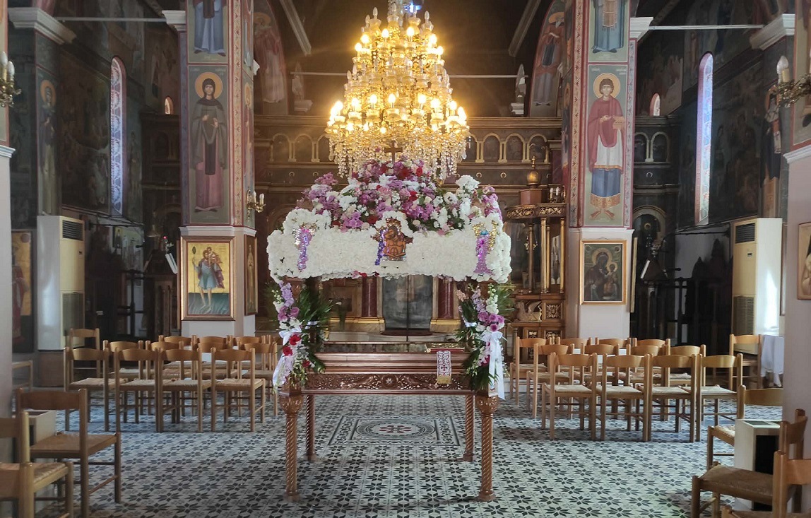 Στον Ιερό Ναό Αγίου Νικολάου Καλυβίων τηρήθηκε και φέτος το έθιμο του στολισμού του Επιταφίου από τις γυναίκες της ενορίας και από ιδιωτικό Ανθοπωλείο του Αγρινίου, που είχε την επιμέλεια και την φροντίδα της διακόσμησης.