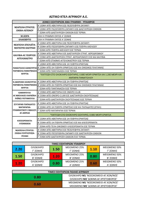 Αναχώρηση από Αγρίνιο καθημερινά: