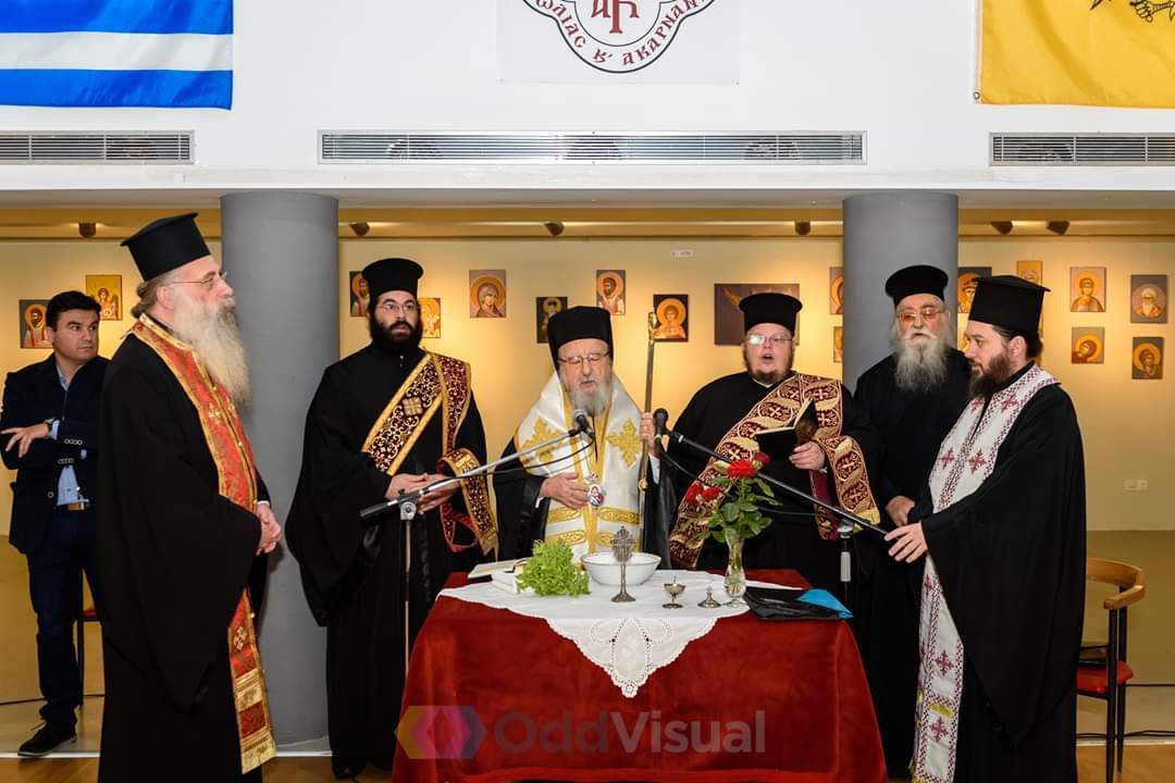 Τον αγιασμό των εγκαινίων τέλεσε ο Σεβασμιώτατος, Μητροπολίτης Αιτωλίας και Ακαρνανίας κ. Κοσμάς, συμπαραστατούμενος από τον Πρωτοσύγκελλο αρχιμ. Επιφάνιο Καραγεώργο, τον Πρόεδρο της Διοικούσης Επιτροπής πρωτοπρ. Χρήστο Παπαχρήστο, και άλλους κληρικούς. Εκ μέρους του Δημάρχου Αγρινίου παρέστη η Αντιδήμαρχος Πολιτισμού κα Μαρία Παπαγεωργίου.