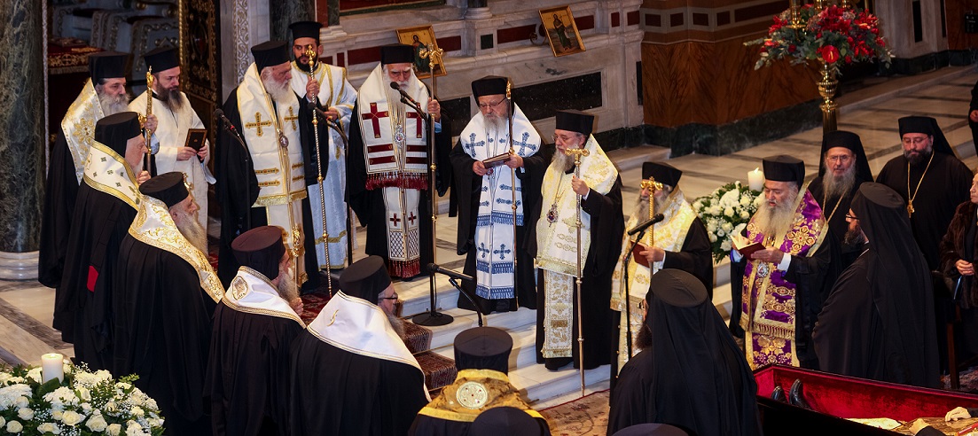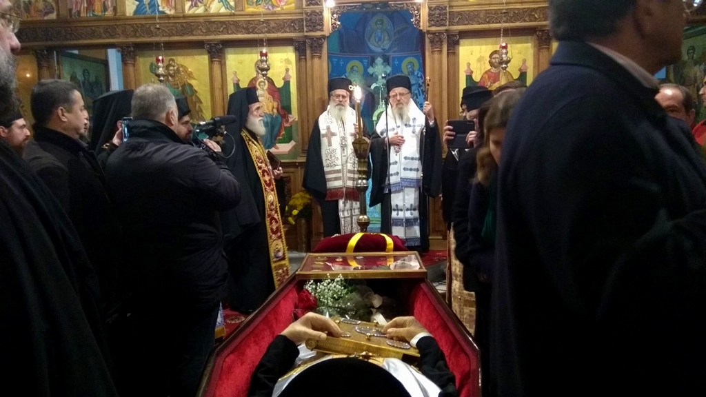 Η νεκρώσιμος ακολουθία τελέσθηκε το μεσημέρι του Σαββάτου στον Ιερό Καθεδρικό Ναό των Αθηνών, προεξάρχοντος του Μακαριωτάτου Αρχιεπισκόπου Αθηνών κ. Ιερωνύμου και με τη συμμετοχή αρκετών αρχιερέων, καθώς και του Σεβασμιώτατου Ποιμενάρχου μας κ. Κοσμά.