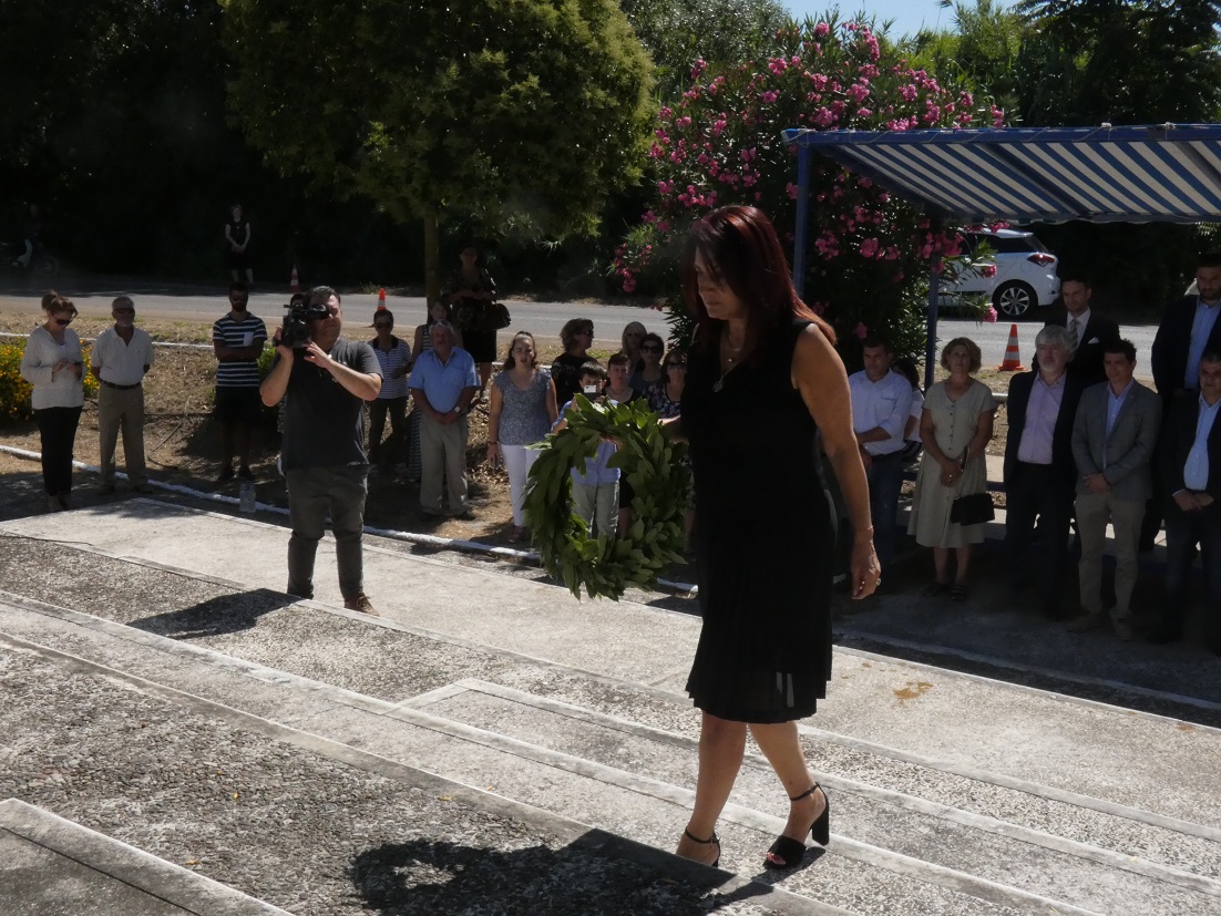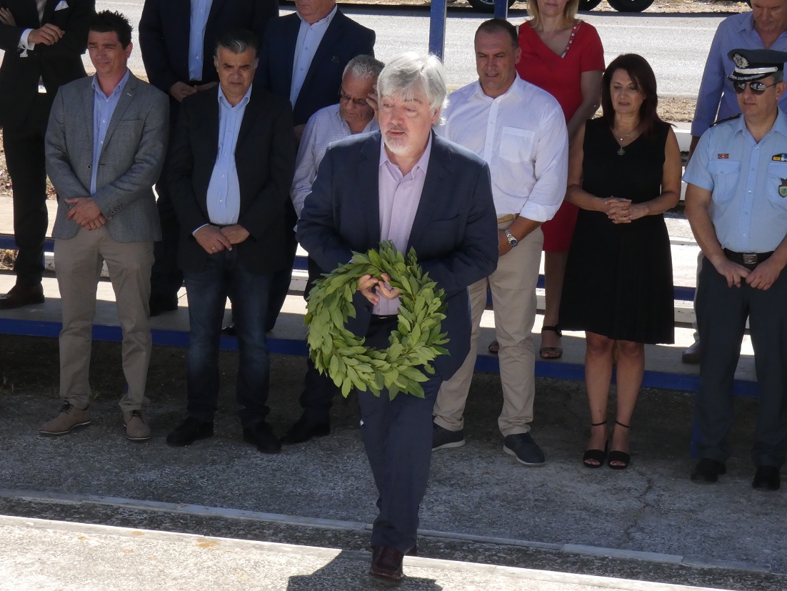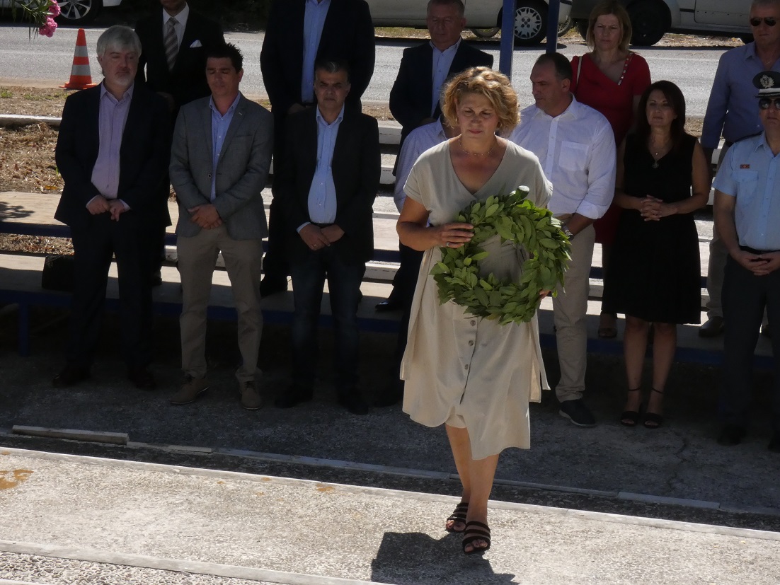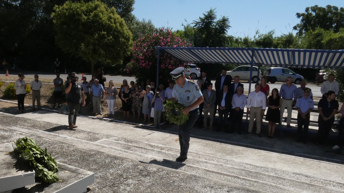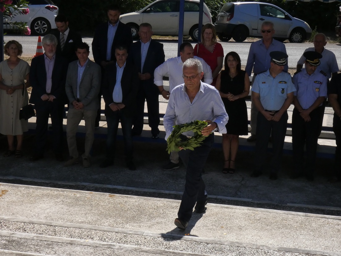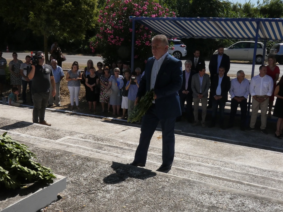 Ακολούθως διαβάστηκε το προσκλητήριο νεκρών για τους 59 πατριώτες που έπεσαν υπέρ πατρίδος, έγιναν καταθέσεις στεφάνων από εκπροσώπους της Τοπικής Αυτοδιοίκησης, των Σωμάτων Ασφαλείας, φορέων, τοπικών συλλόγων και συγγενών των θυμάτων.