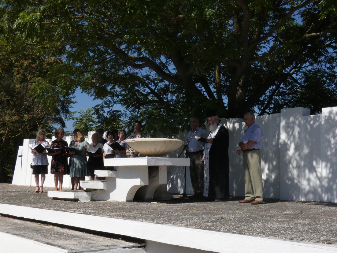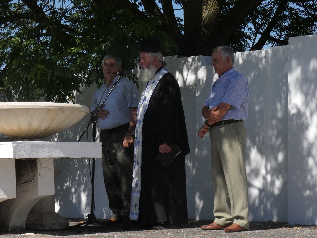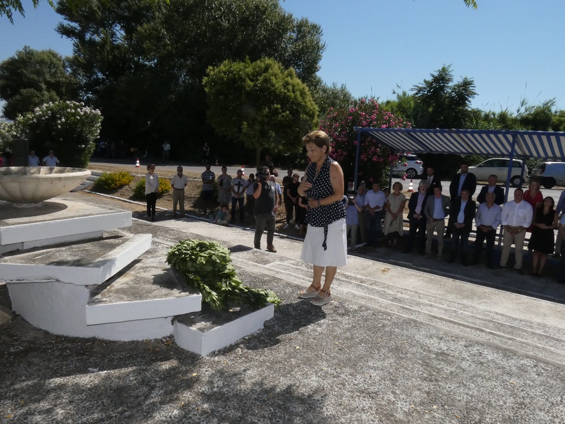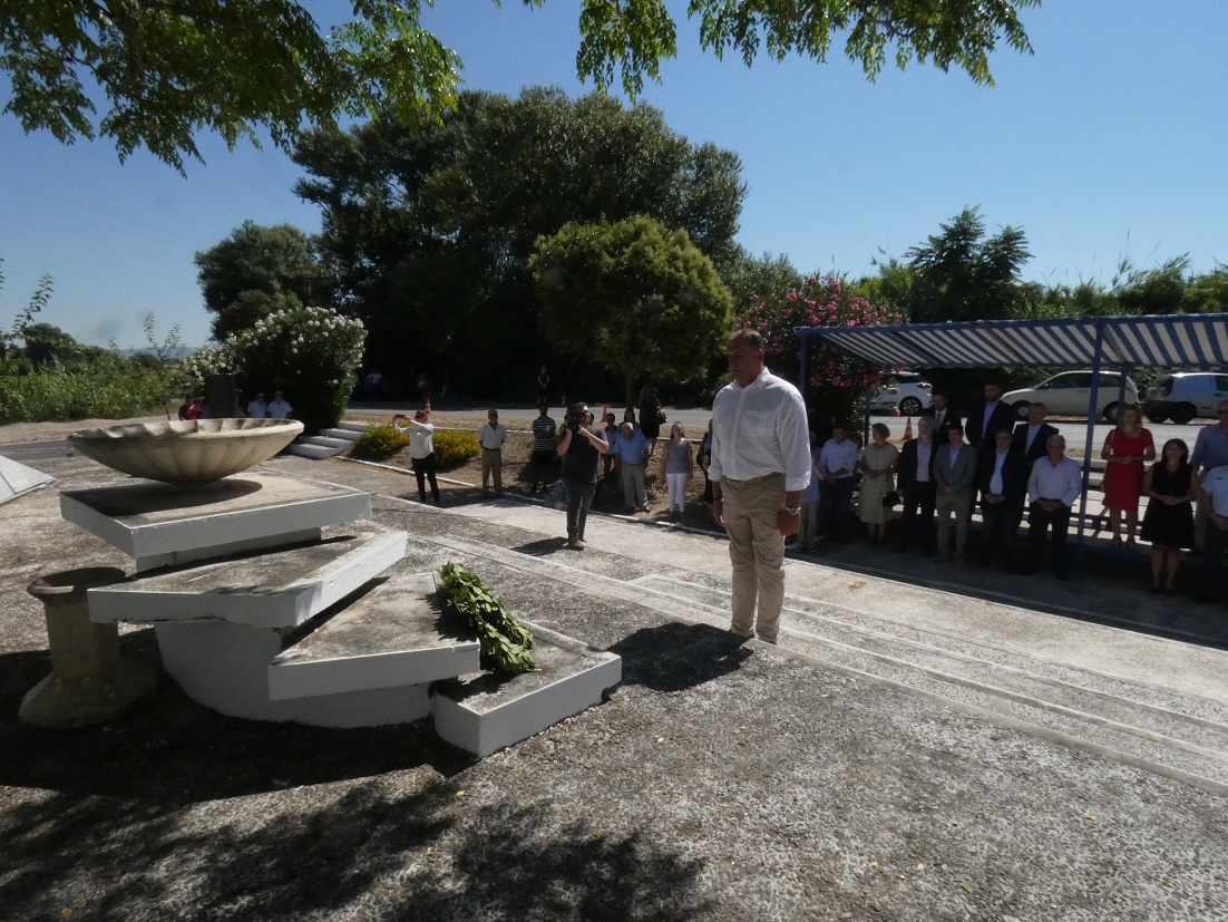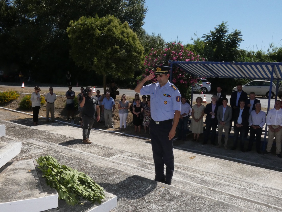 Κατόπιν πραγματοποιήθηκε Τρισάγιο υπέρ αναπαύσεως των ψυχών στον τόπο θυσίας, όπου και βρίσκετε το Μνημείο των Πεσόντων αγωνιστών, ενώ ο αντιδήμαρχος Περιβάλλοντος και Πολιτικής Προστασίας, κύριος Σωτήρης Κολοβός, αναφέρθηκε στο ιστορικό της ημέρας και στην παρακαταθήκη των αγώνων που μας παρέδωσαν οι πρόγονοί μας. Ανέφερε μεταξύ άλλων: «Εβδομήντα έξι χρόνια μετά διατηρούμε ζωντανή τη μνήμη και εμπνεόμαστε από τα μηνύματα της θυσίας τους. Θα είναι πάντα η γέφυρα του χθες με το σήμερα, θα είναι αυτό που σε ολόκληρο τον κόσμο λένε ότι οι ήρωες πολεμούν σαν Έλληνες».