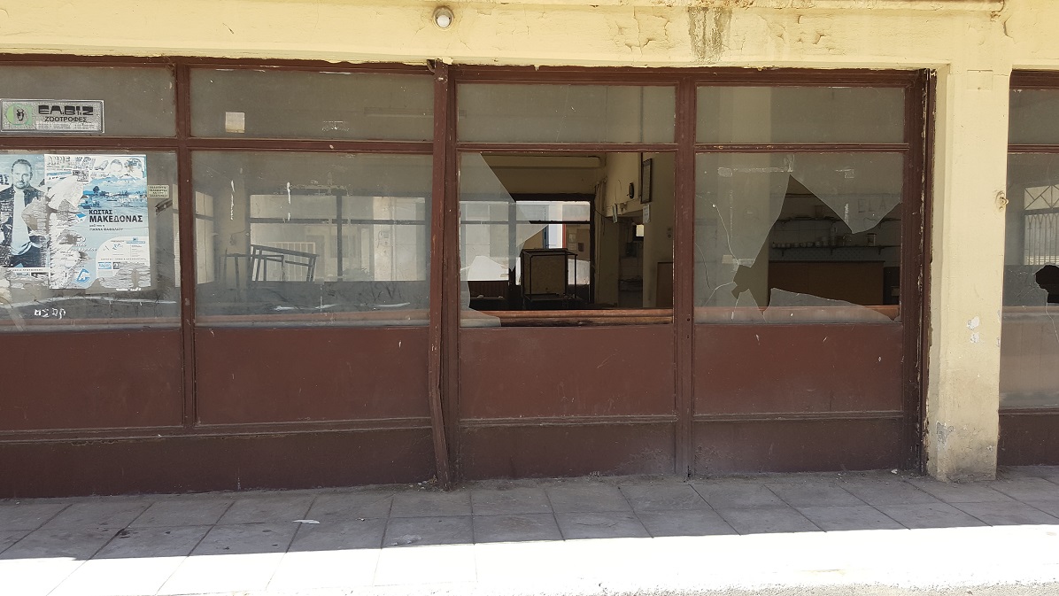 Σπασμένα τζάμια σε παλιό κτίριο που παλιότερα λειτουργούσε ως καφενείο στην μικρή πλατεία του χωριού, αποτελούν κίνδυνο για τους διερχόμενους πεζούς αλλά και για οχήματα που παρκάρουν στο σημείο.