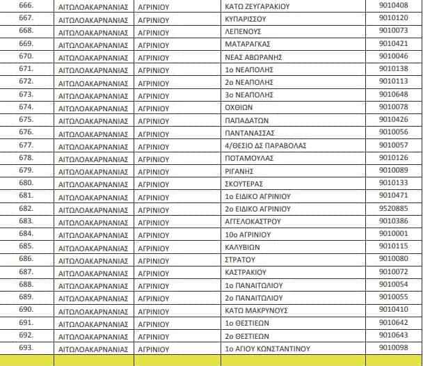 Δείτε τον πίνακα που ακολουθεί με όλες τις σχολικές μονάδες πρωτοβάθμιας εκπαίδευσης του δήμου Αγρινίου, στις οποίες θα υλοποιηθεί το πρόγραμμα:
