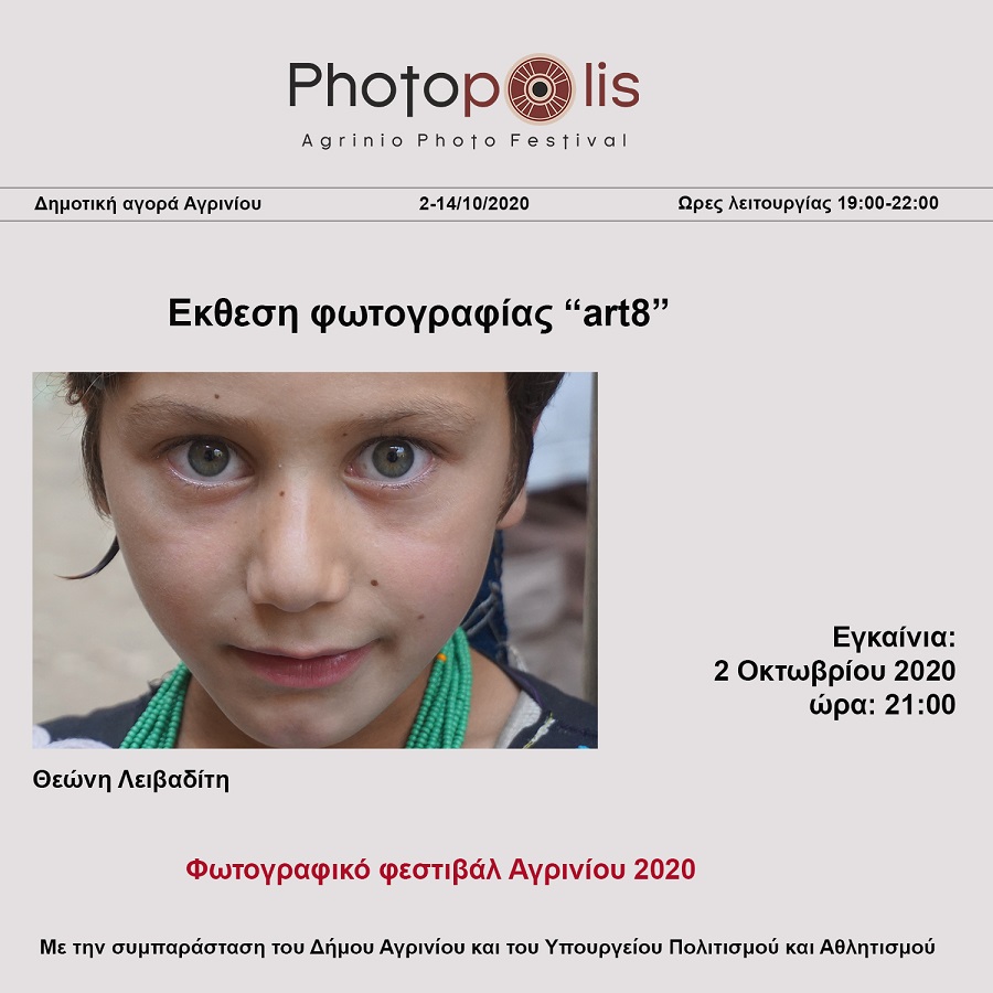 Το Φωτογραφικό Φεστιβάλ Αγρινίου αποτελεί την φυσική εξέλιξη των ετήσιων φωτογραφικών εκθέσεων της φωτογραφικής ομάδας Αγρινίου με τον διακριτικό τίτλο “art8”, που αποτελεί τμήμα του συλλόγου “Καλλιτεχνικό Παραδοσιακό Εργαστήρι Αγρινίου”.