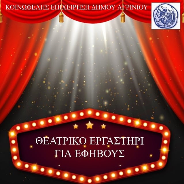 Το θεατρικό εργαστήρι για εφήβους της Κοινωφελούς Επιχείρησης Δήμου Αγρινίου ανοίγει την αυλαία του την Πέμπτη 1 Οκτωβρίου, στην ¨Φαντασία¨ και ώρες 19:00-21:00. Δασκάλα του τμήματος είναι η θεατρολόγος, Μαρίνα Καραφά.