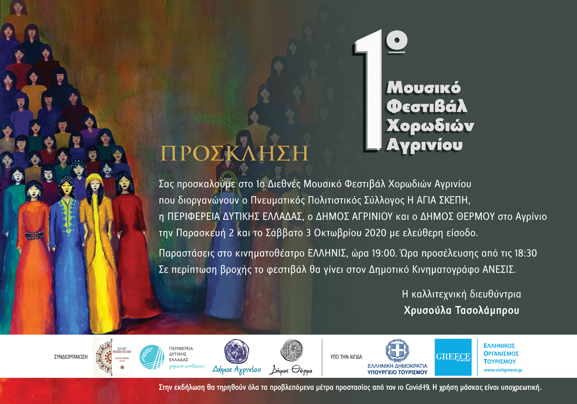 Η Οργανωτική Επιτροπή του «1ου Φεστιβάλ Χορωδιών Αγρινίου» κηρύσσει την έναρξή του με τις παραστάσεις να πραγματοποιούνται στο Δημοτικό Κινηματοθέατρο ΕΛΛΗΝΙΣ την Παρασκευή 2 Οκτωβρίου και το Σάββατο 3 Οκτωβρίου, στις 7 το βράδυ, με ελεύθερη είσοδο για το κοινό.
