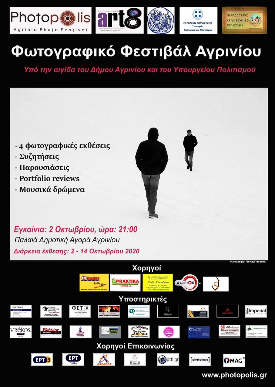 Τέσσερις φωτογραφικές εκθέσεις θα περιλαμβάνει το πρόγραμμα των κεντρικών εκδηλώσεων του Φωτογραφικού Φεστιβάλ Αγρινίου – Photopolis 2020 που διοργανώνει η φωτογραφική ομάδα «art8» υπό την αιγίδα του δήμου Αγρινίου και την συμπαράσταση του Υπουργείου Πολιτισμού.