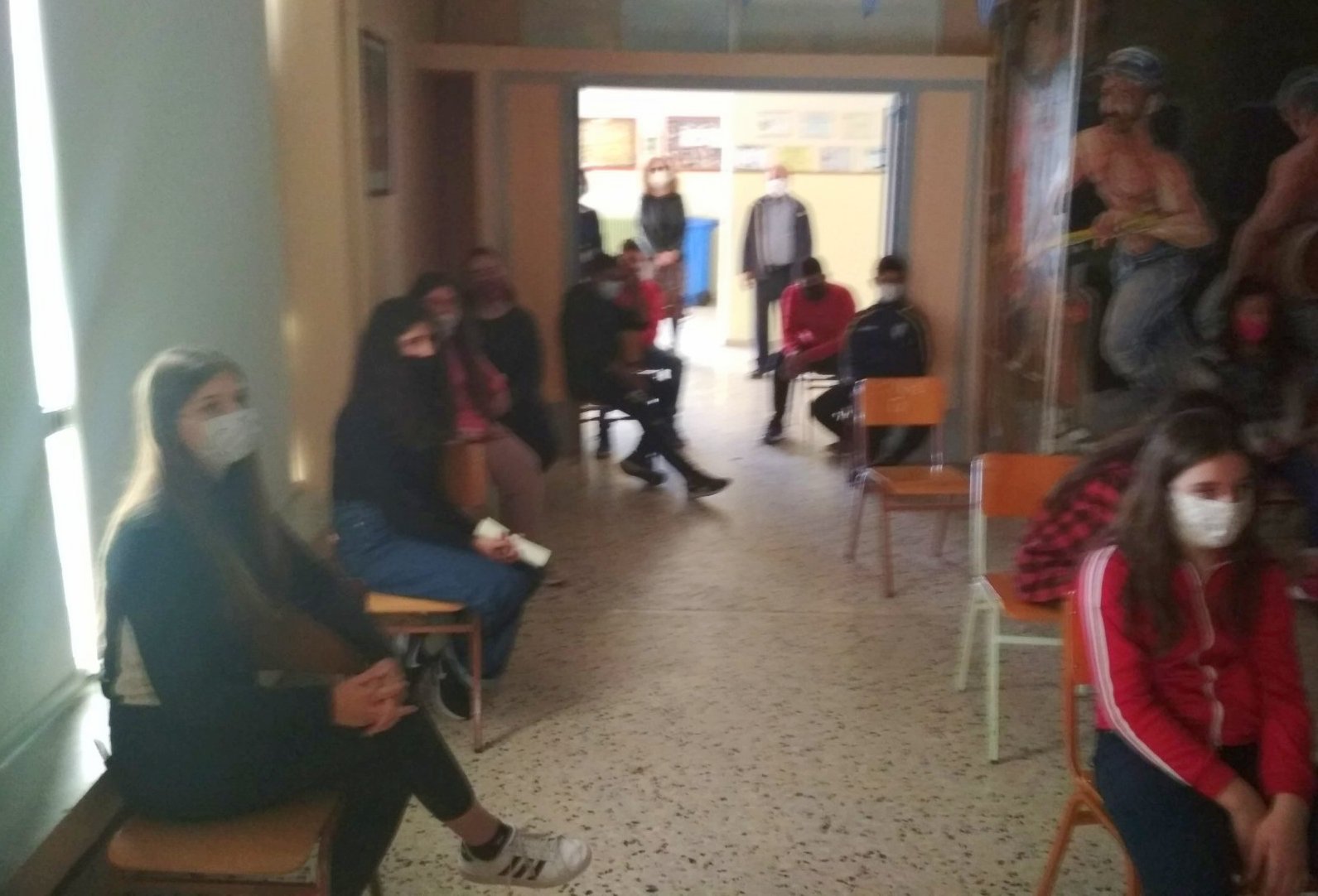 Ακολούθησε η προβολή ιστορικού ντοκιμαντέρ, στην αίθουσα εκδηλώσεων, με τους μαθητές να προσέρχονται τμηματικά για να παρακολουθήσουν τα γεγονότα και τις πολεμικές μάχες που διαδραματίστηκαν στο ελληνο-ιταλικό μέτωπο το 1940-41.
