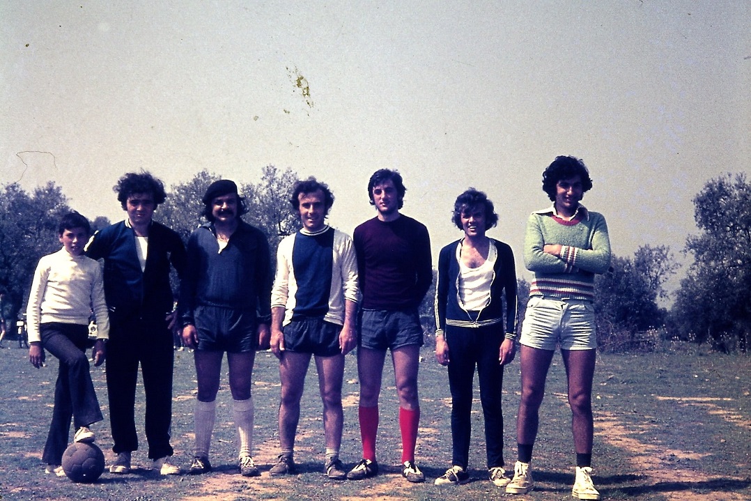 6) Μία από τις ομαδούλες που πηγαίναμε να παίξουμε ποδόσφαιρο σε ένα χωράφι με χόρτο κοντά στο Ματσούκι. Για την ιστορία οι ποδοσφαιριστές μιας ομάδας από αριστερά: Πάνος Τσιμπάκης, Βασίλης Τσακίρης, Χρήστος Τσόλκας, Γιάννης Γιαννακόπουλος, Νίκος Νικολακόπουλος, Χρήστος Παπαγεωργίου, Γιώργος Τσιμπάκης.