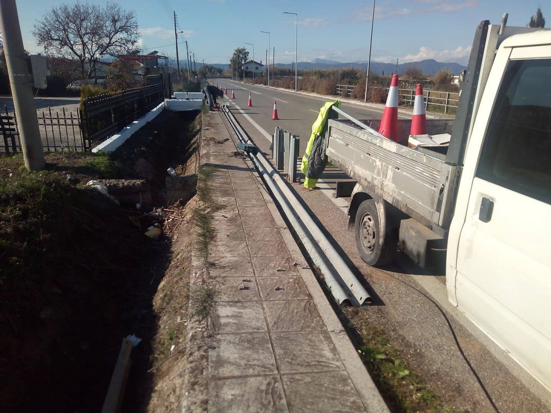 Σήμερα αντικαταστάθηκαν οι μπάρες σε μήκος 100 μέτρων, στο ύψος της εκκλησίας του Αγ. Δημητρίου, τα οποία είχαν αποκολληθεί από τη βάση τους και ήταν παραπεταμένα σε διπλανή τάφρο και σε χωράφια, περισσότερο από μια 10ετία!