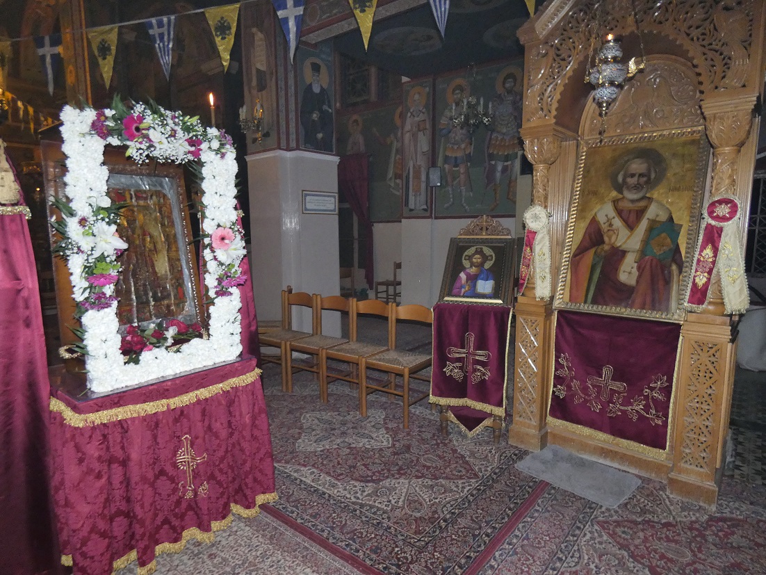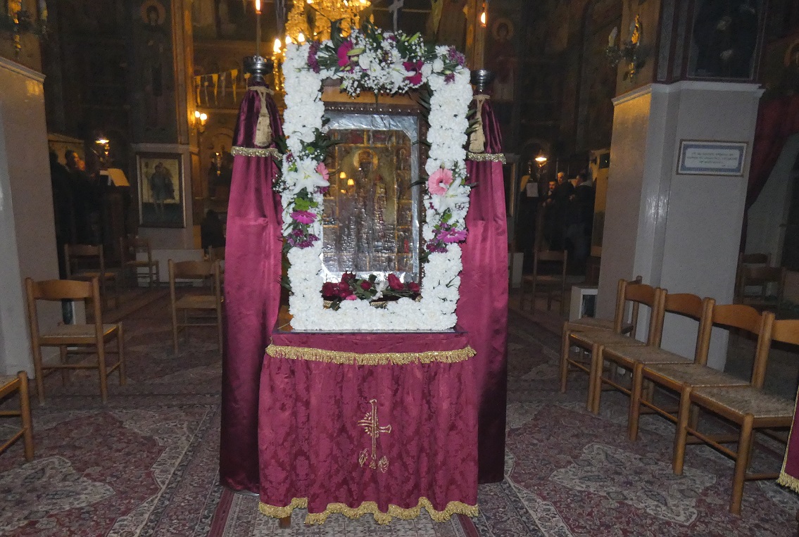 Ο ιερέας π. Θεοδόσιος Αθανασόπουλος, συνοδεία των ιεροψαλτών, έψαλλε την Αρτοκλασία, ενώ για πρώτη φορά δεν πραγματοποιήθηκε η καθιερωμένη λιτάνευση της Ιεράς Εικόνας του πολιούχου Αγίου Νικολάου Αρχιεπισκόπου Μύρων Λυκίας, προς τον παλιό κοιμητηριακό ναό.