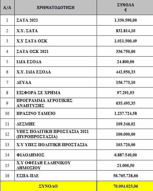 Το Τεχνικό Πρόγραμμα του Δήμου Αγρινίου έτους 2021 ανά πηγή χρηματοδότησης έχει ως εξής: