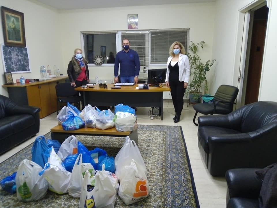 Η συγκέντρωση των τροφίμων έγινε στο Κοινοτικό Κατάστημα Καλυβίων.