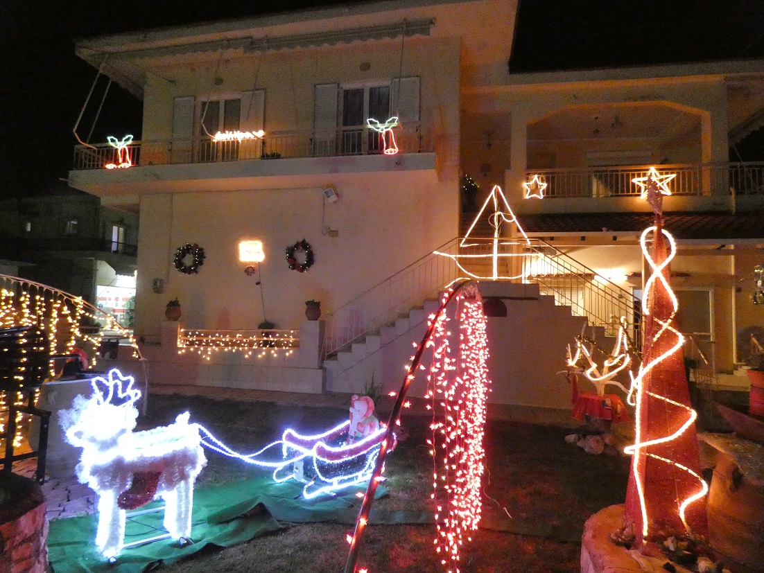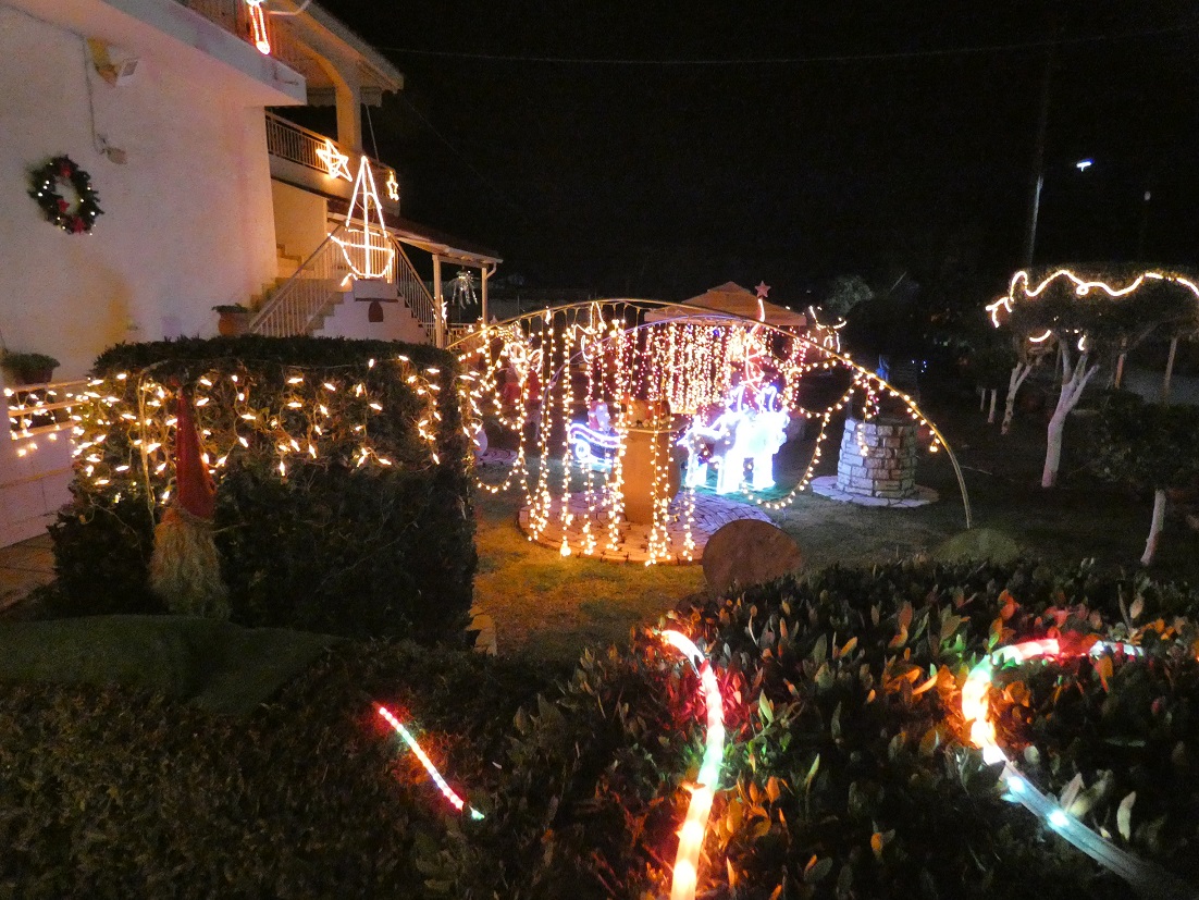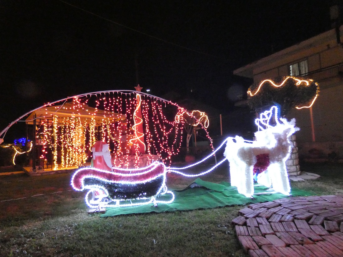 Συνεχίζοντας το όμορφο έθιμο του χριστουγεννιάτικου στολισμού στο σπίτι και στον κήπο της, η συγχωριανή μας κυρία Νίκα Ζαπαντιώτη, έφτιαξε και φέτος με πολύ αγάπη και μεράκι ένα μαγικό σκηνικό στα Καλύβια, με πολλά όμορφα χρωματιστά λαμπιόνια, με φωτισμούς σε δέντρα και θάμνους, που εντυπωσιάζουν!
