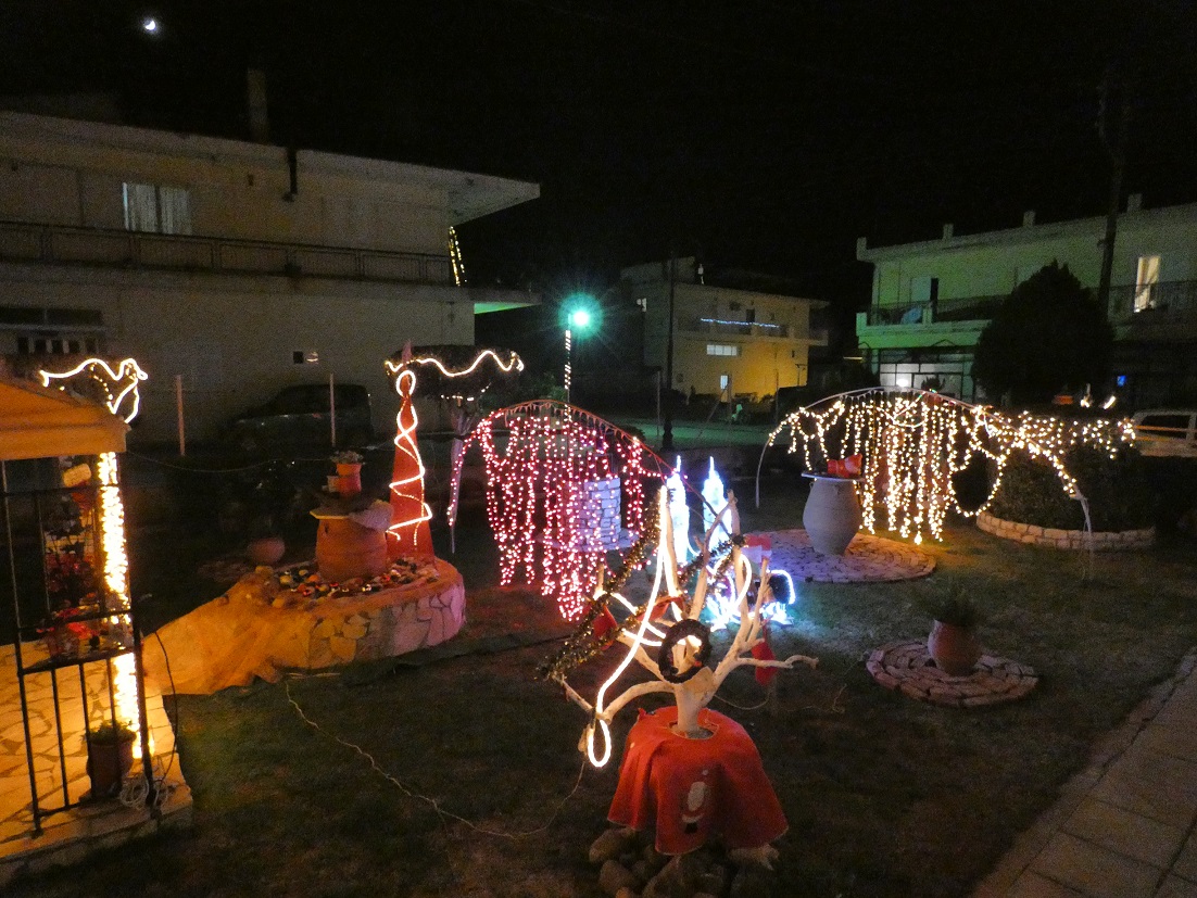 Τούτες τις γιορτινές χριστουγεννιάτικες μέρες στο χωριό μας, ο κήπος γέμισε με στολίδια και φωτισμούς σε κάθε σημείο του, όλα αυτά μαζί ¨δεμένα¨ αρμονικά στον όμορφο και περιποιημένο χώρο, ο οποίος αποτελεί ταυτόχρονα και ένα υπέροχο λαογραφικό μουσείο!