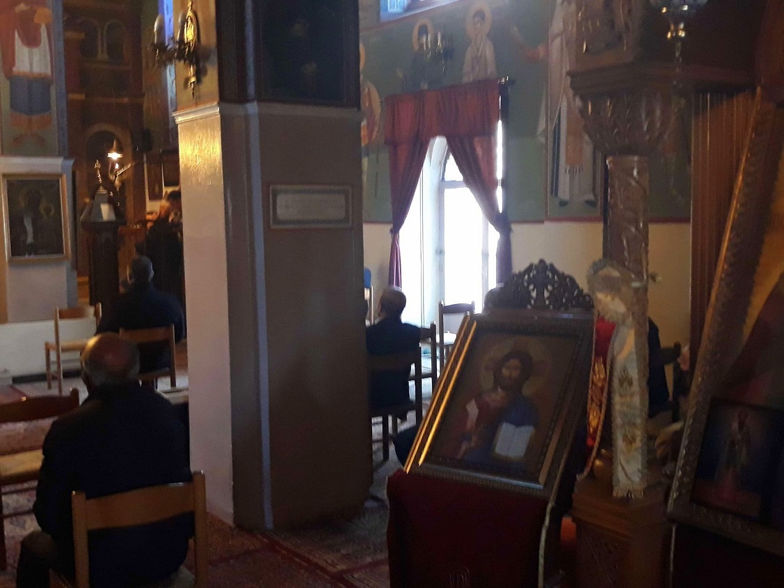 Τις ιερές ακολουθίες τέλεσε ο ιερέας π. Θεοδόσιος Αθανασόπουλος, συνοδεία των ιεροψαλτών, ενώ τηρήθηκαν όλα τα μέτρα που προβλέπονται και η χρήση μάσκας από τους πιστούς.
