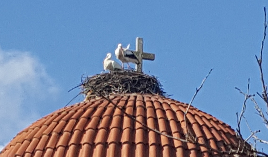 Νέοι ¨νοικάρηδες¨ ήρθαν νωρίς νωρίς με την αρχή της χρονιάς και ήδη ανακαινίζουν την πελαργίσια φωλιά στον τρούλο της εκκλησίας του χωριού μας!