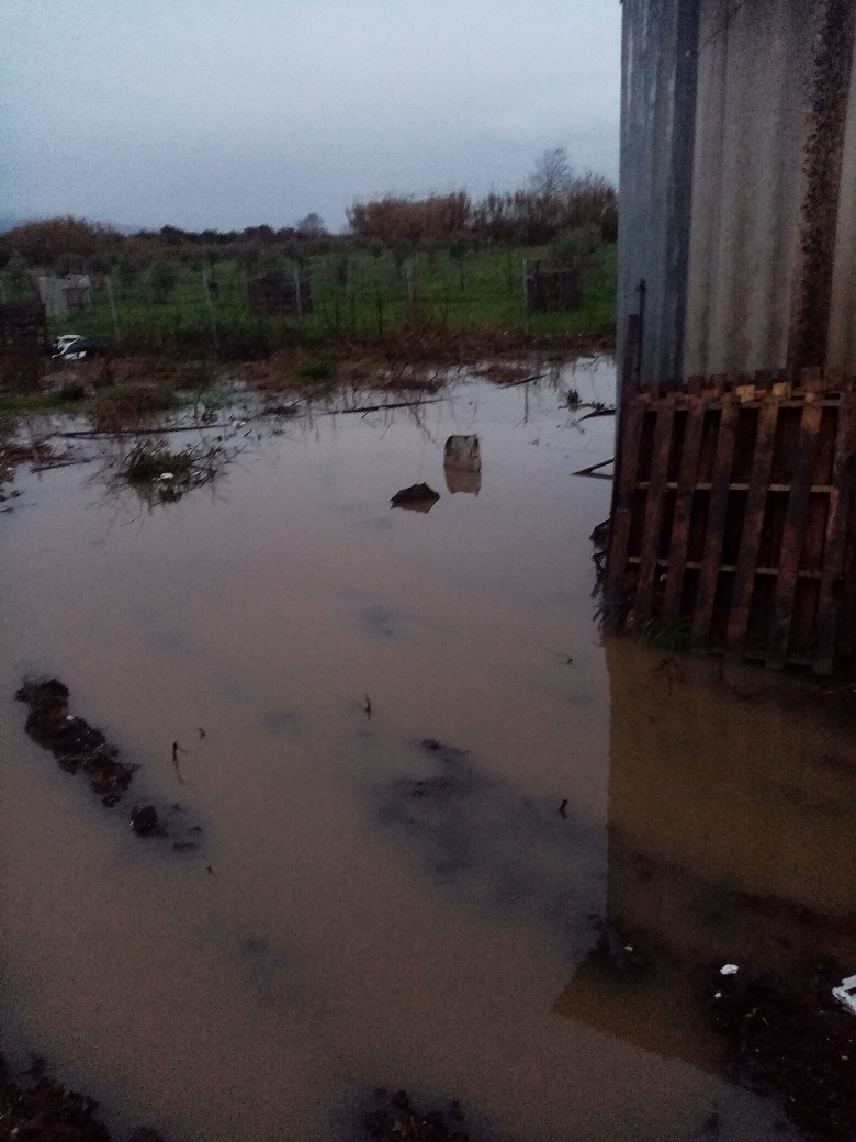 Μεγάλες ζημιές υπέστη χθες από την κακοκαιρία και την εισροή μεγάλης ποσότητας υδάτων, η αποθήκη και το ποιμνιοστάσιο του συγχωριανού μας Νίκου Π. Διώτη, στην περιοχή του παλιού οικισμού Αγ. Γεωργίου Καλυβίων.