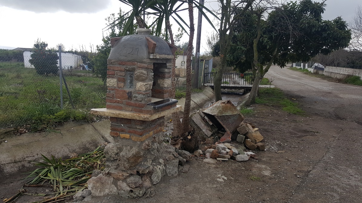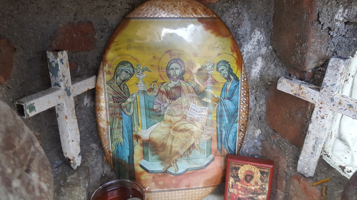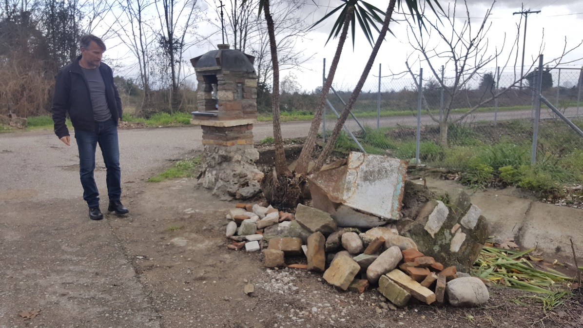 Δίπλα πεσμένο είναι το παλιό εικόνισμα, από τα υλικά του οποίου θα φτιαχτεί και ένα μικρό πεζούλι, για να ξαποσταίνουν οι περαστικοί…