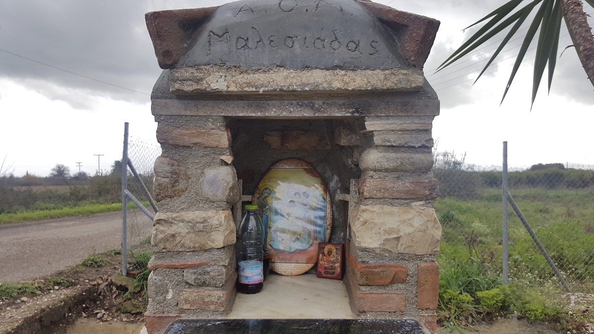 Ένα εικονισματάκι απέριτο, με τη δική του μοναξιά και τη δική του μελαγχολία, δημιουργήθηκε στην άκρη του χωριού από τα δυο αδέρφια Μαλεσιάδα, για να προστατεύει την οικογένειά τους και τους μικρούς Αλέξανδρο, Ορέστη και Μιχαήλ που βοήθησαν για να χτιστεί, ένα εικονισματάκι που θα διώχνει το κακό και θα φέρνει ηρεμία και γαλήνη!