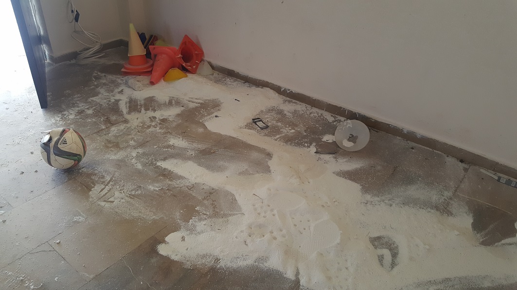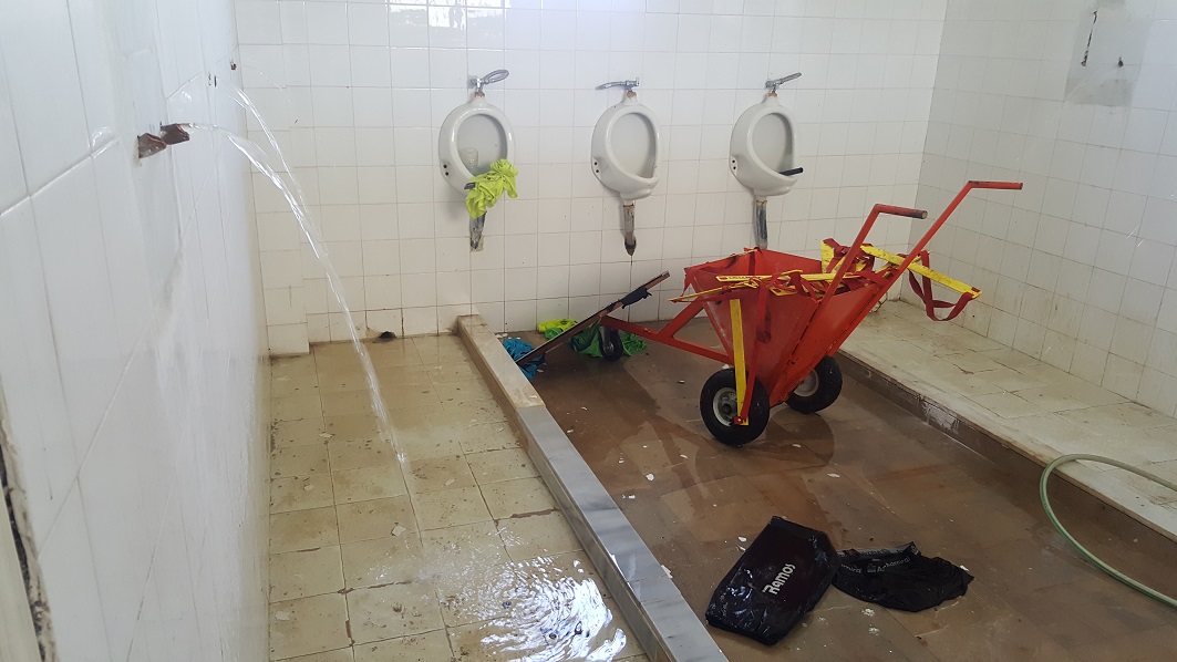 Δυστυχώς η εικόνα του ¨βομβαρδισμένου τοπίου¨ στο χώρο των αποδυτηρίων του γηπέδου προκαλεί μόνο θλίψη.