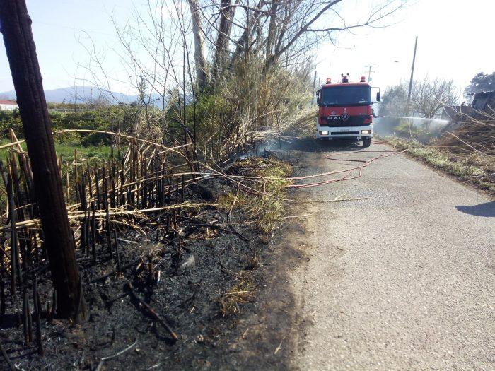 Φωτιά έκαψε αποθήκη σήμερα το μεσημέρι στον οικισμό Πλατάνου Καλυβίων, πυρκαγιά η οποία ξεκίνησε από καλαμιές στην ανατολική πλευρά του δρόμου και λόγω του δυνατού αέρα μεταπήδησε στην απέναντι πλευρά, όπου εκεί κοντά βρίσκονταν αποθήκη με ζώα και κατοικίες.